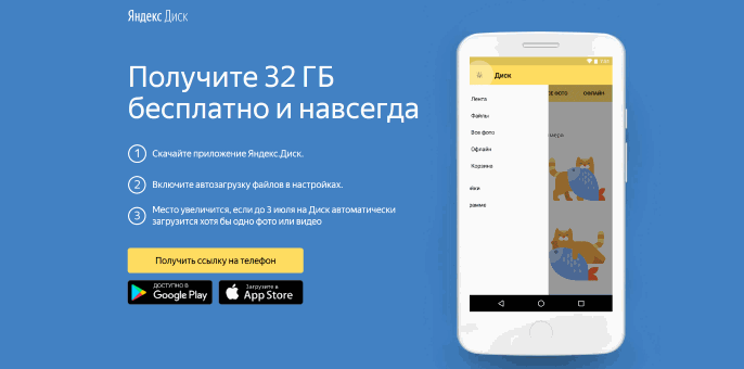 Яндекс дает шанс всем у кого есть смартфоны под управлением Android и iOS, получить 32Гб дополнительного места на «Яндекс.Диске». Акция продлится до 03.07.2017.